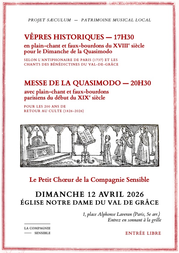 12 avril, horaire à venir, Notre-Dame du Val de Grâce, Paris - Vêpres historiques en plain-chant et faux bourdon